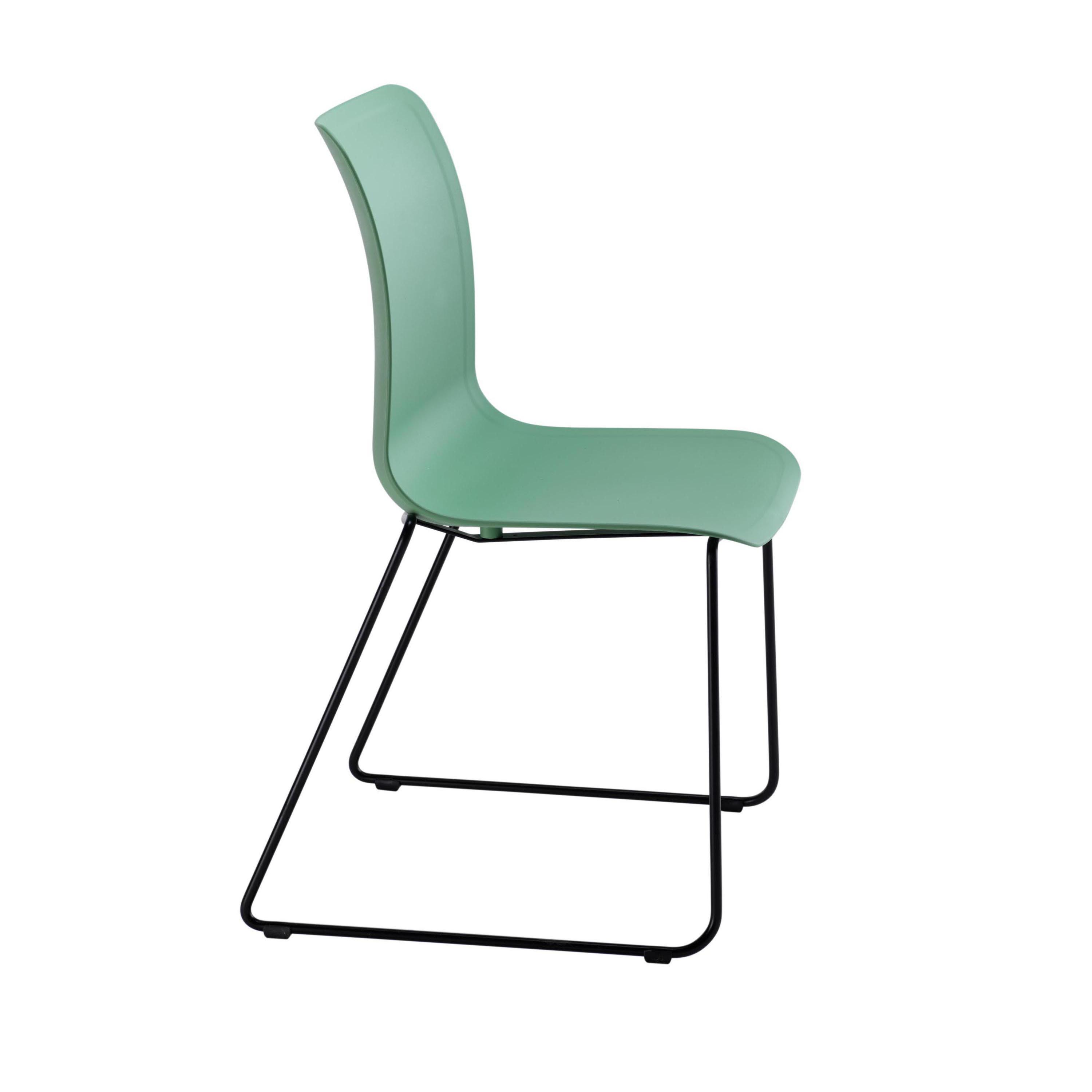 Astin Logi Skid Chair 530x530x860mm Green KF70029. Modern and versatile. Easily adapting to a range of settings with its skid floor-friendly design. Minimalistic, sleek, and ergonomic design. Recommended Usage Time: 8 hours.Seat Dimensions (WxDXH): 450x420x450mm. Back Dimensions (WxH): 440x410mm. Green shell. Dimensions (WxDxH): 530x530x860mm.