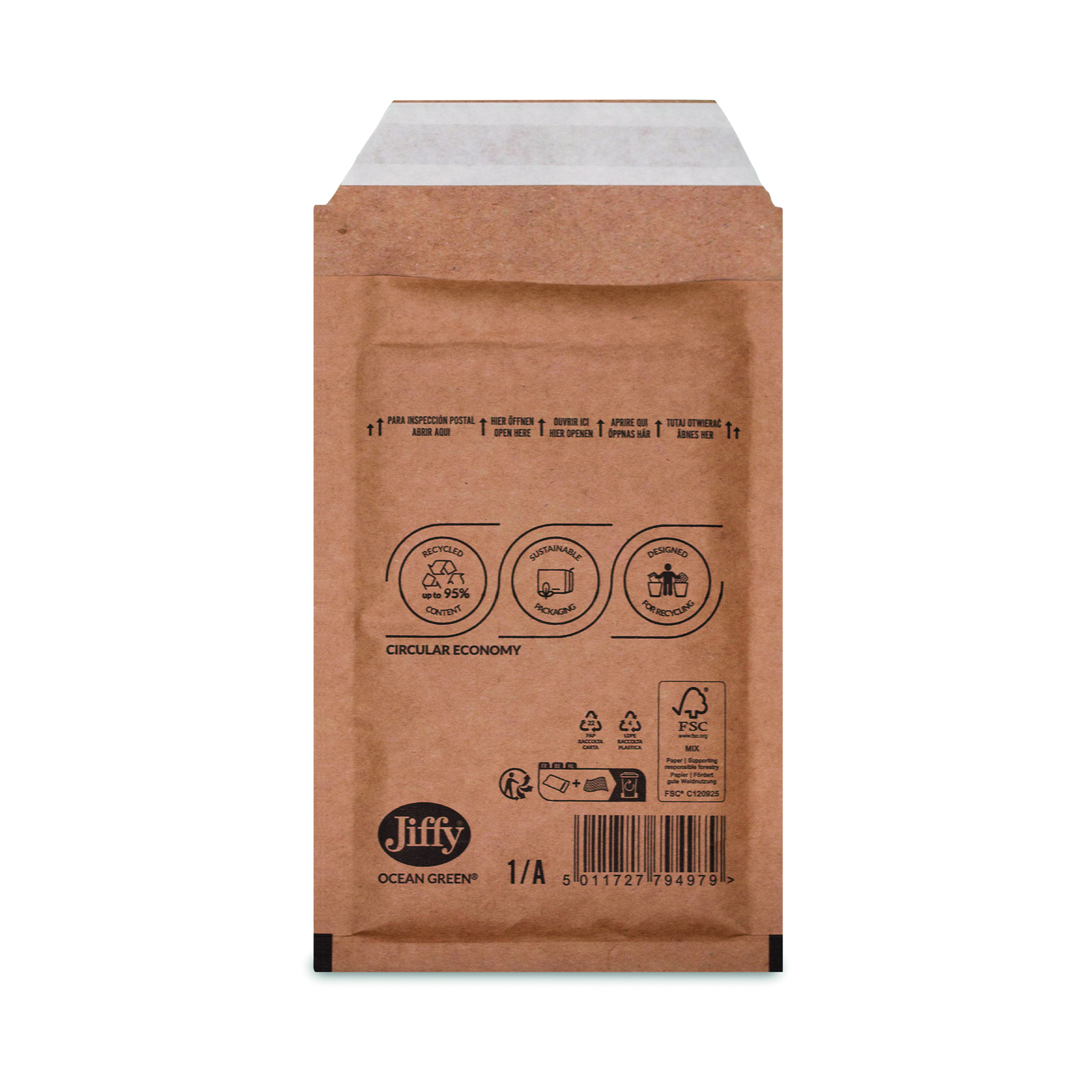 Jiffy Ocean Green Uncoated Mailers 1/A Brown (Pack of 200) MAKU18881