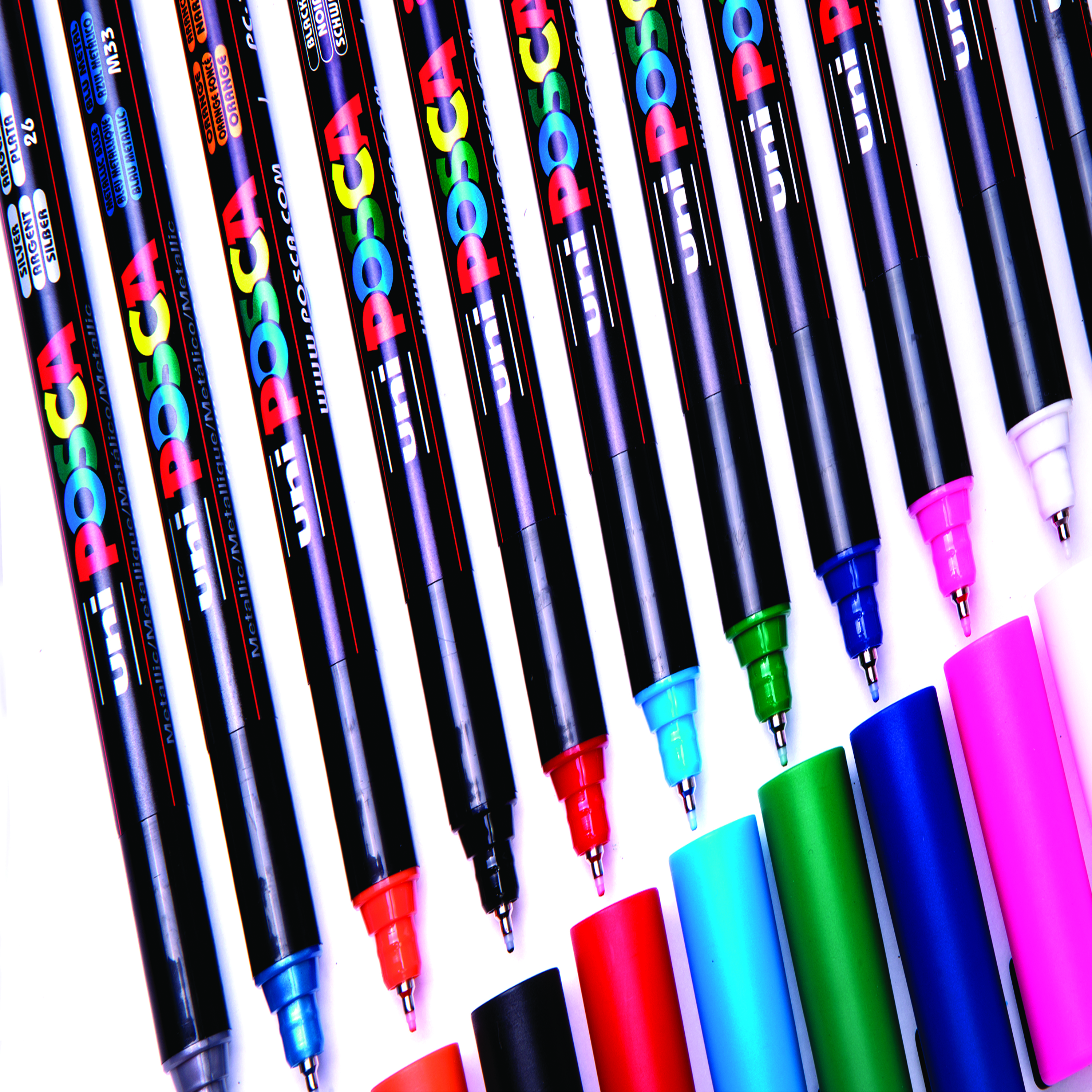 POSCA paint markers are excellent multi-surface, creative pens. The uni POSCA paint marker contains water-based pigment ink which is lightfast, water-resistant and will write on almost any surface. The POSCA markers are permanent markers on paper, card and wood and can be made permanent on various other surfaces including terracotta, porcelain, glass, textiles, metal, plastic and wood. These multi-use marker pens are available in a number of vibrant, opaque solid colours which can be mixed while the paint is wet and overlay colours on top of one another when they dry. Excellent for customisation, up-cycling, illustration, posters, fine art or sign-writing. Supplied in a pack of 8 pens in assorted colours.