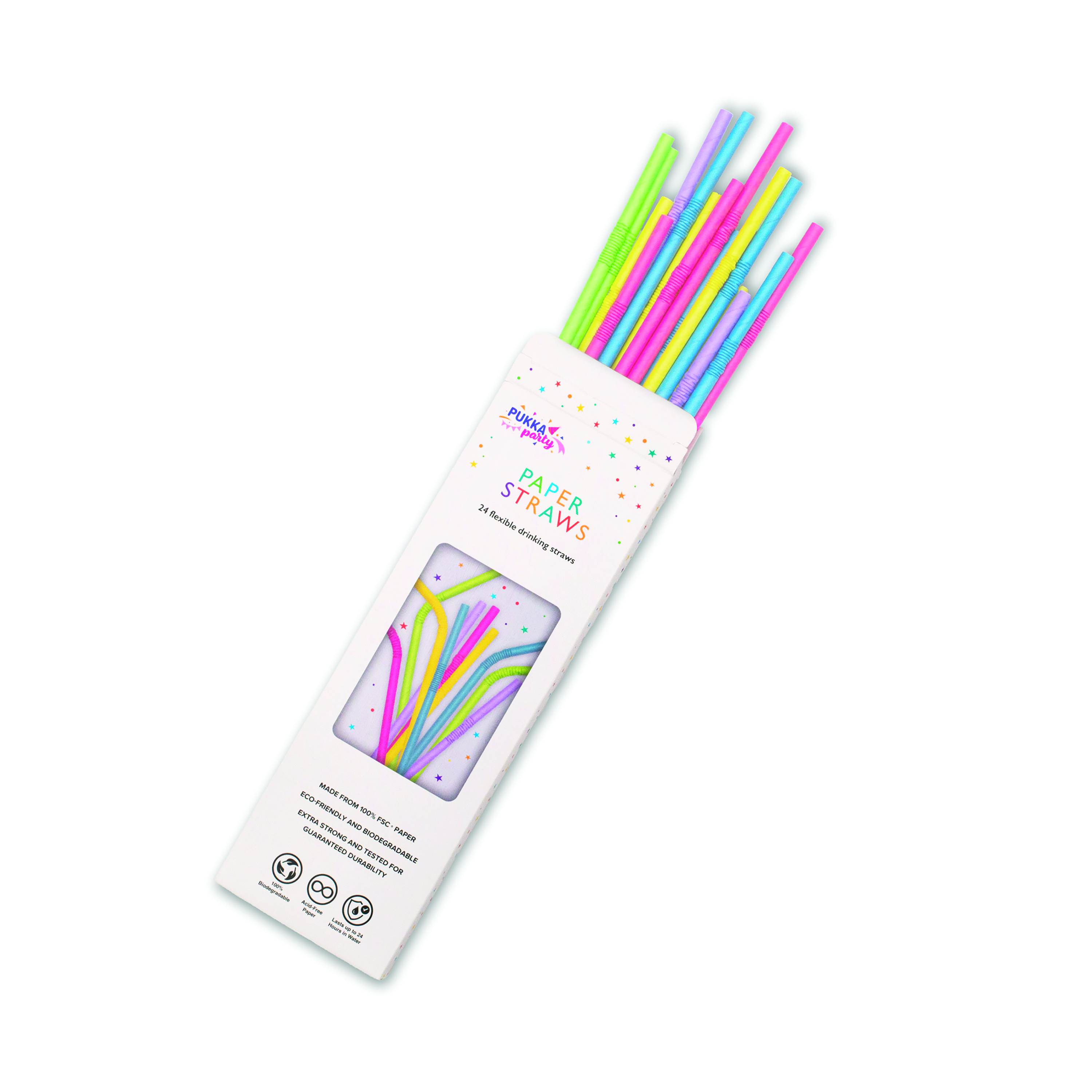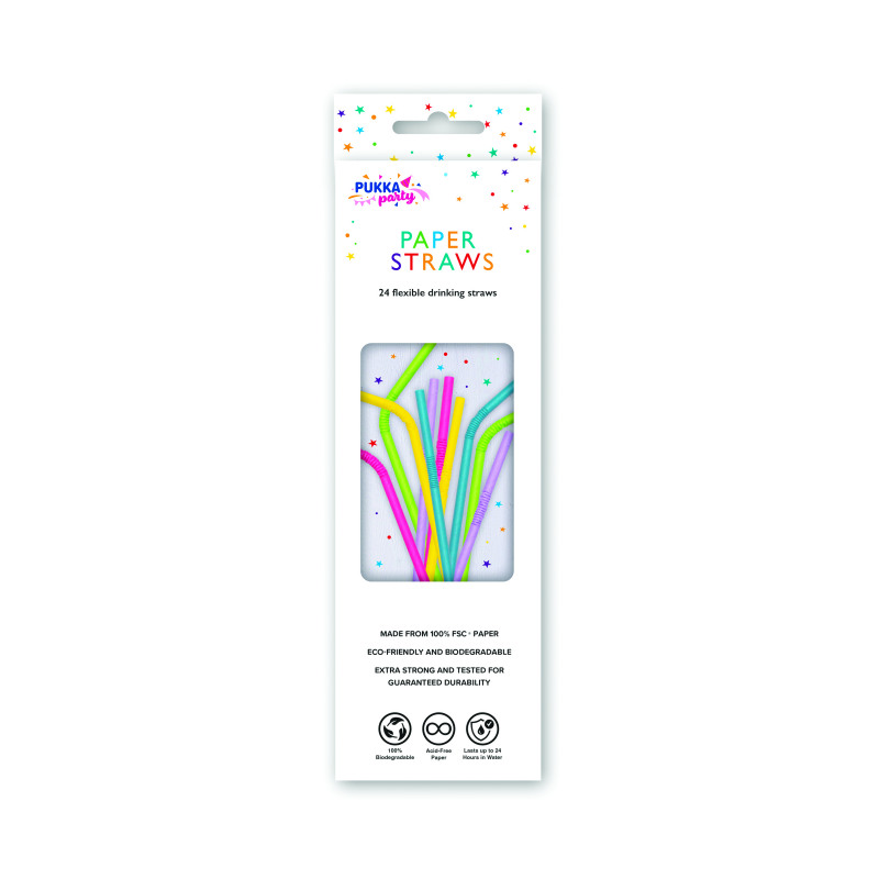 Pukka Party Flexible Drinking Straws Assorted (Pack of 24) PTY580